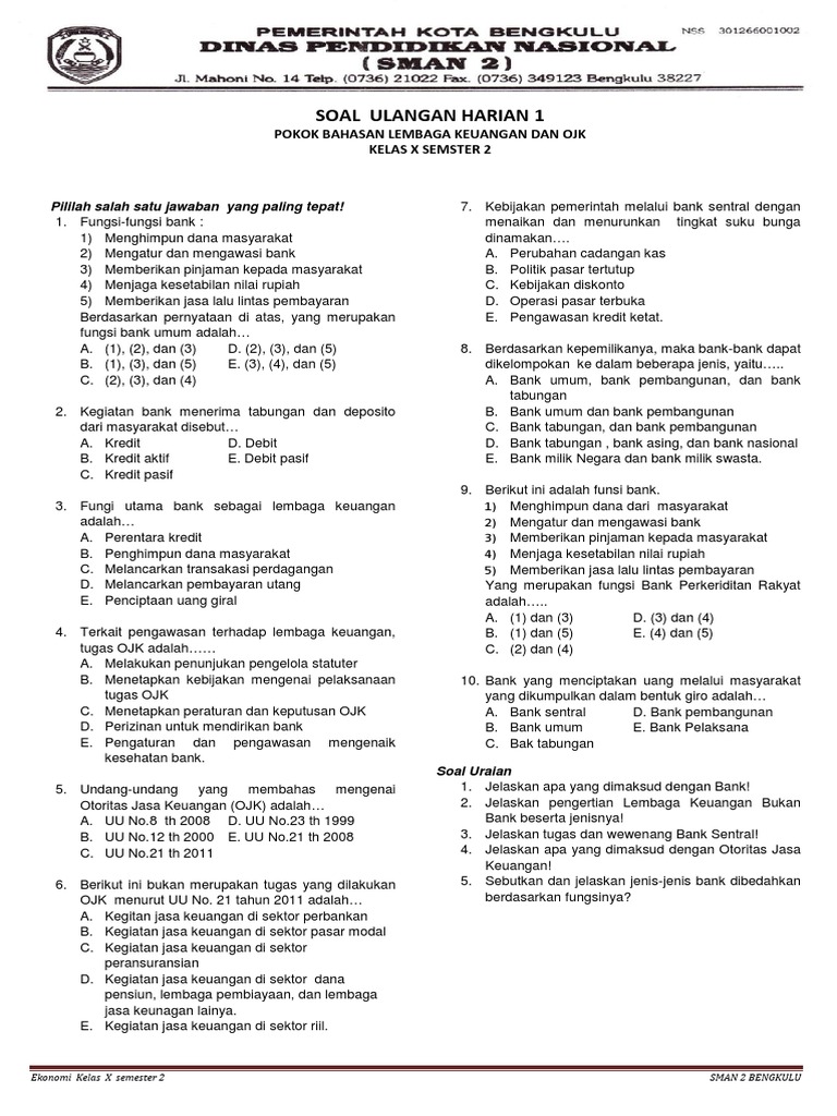 Contoh Soal Pilihan Ganda Tentang Ojk Barisan Contoh from image.slidesharecdn.com Soal pilihan ganda tingkat smp (penggalang). Soal pilihan ganda tentang manajemen. Rumah lantik b.rumah panjang c. 10 tahun 1998, definisi bank adalah: Download soal pilihan ganda bab perbankan. A, ilmu logam produktif b. Jawablah pertanyaan di bawah ini dengan baik dan benar. Sekian postingan soal tentang akuntansi pada kesempatan kali ini, dan terimakasih atas kunjunganmu di blog ini.